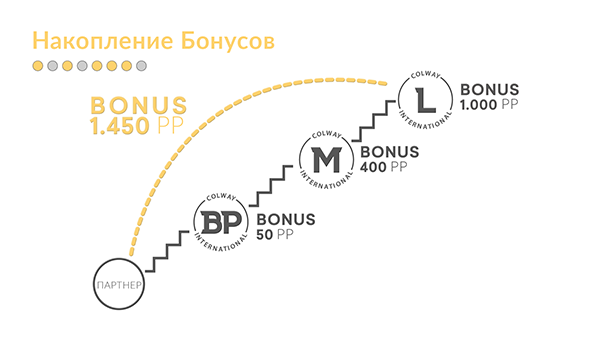 финансовое преимущество для лиц, только начинающих свою карьеру в Colway International. Хороший аргумент для предъявления Партнерам,